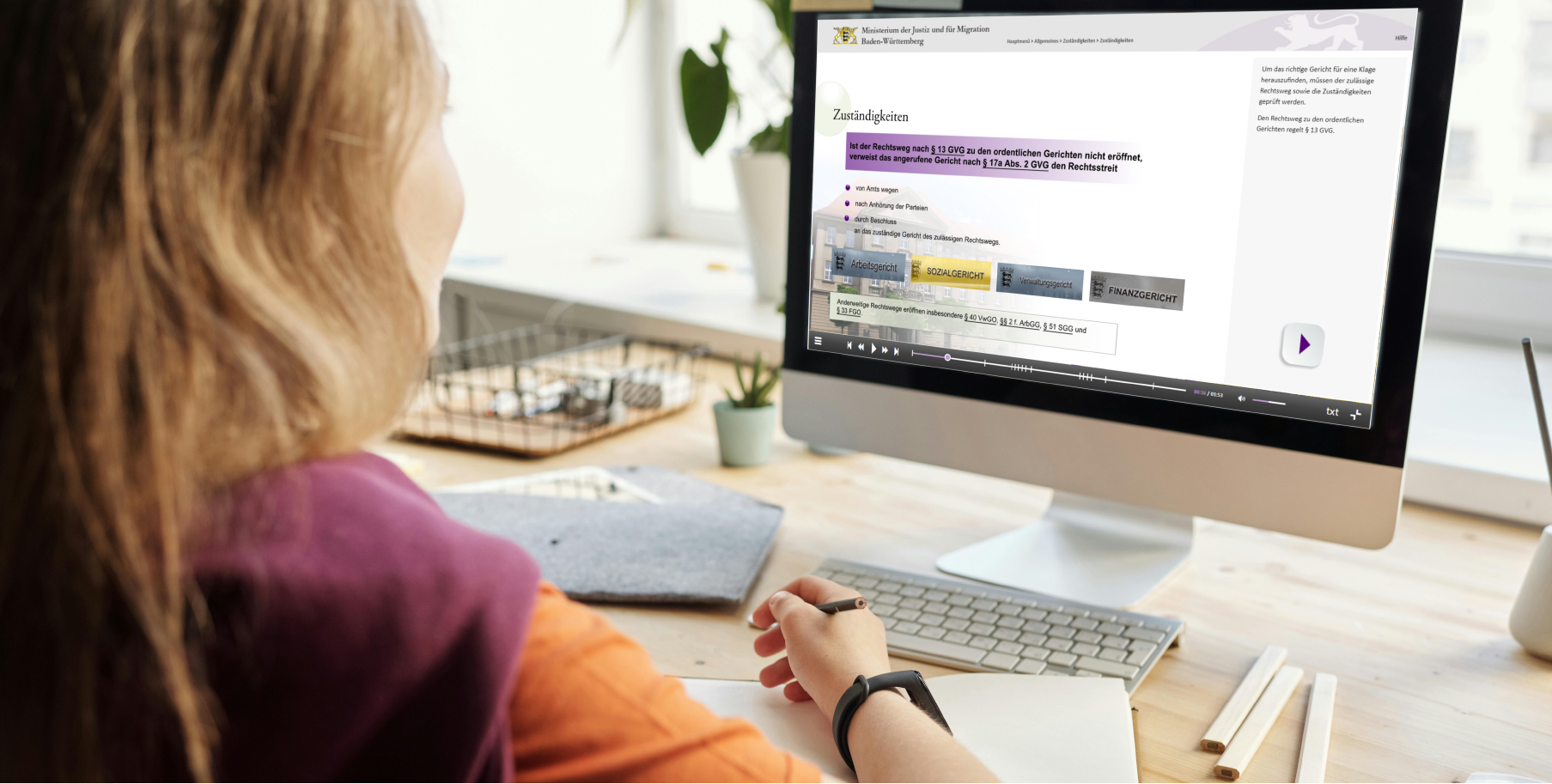 Das Modul eJustice vermittelt Grundkenntnisse für die praktische Arbeit mit dem elektronischen Rechtsverkehr und der elektronischen