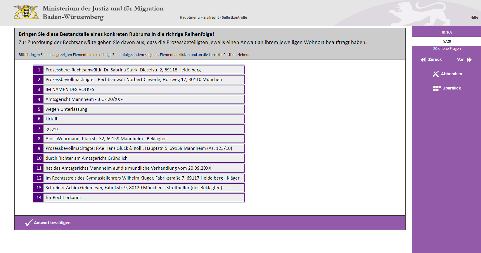 rechtskräftigen Abschluss des Verfahrens. Sukzessive können sich die Lernenden eine diesen Fall betreffende Musterakte